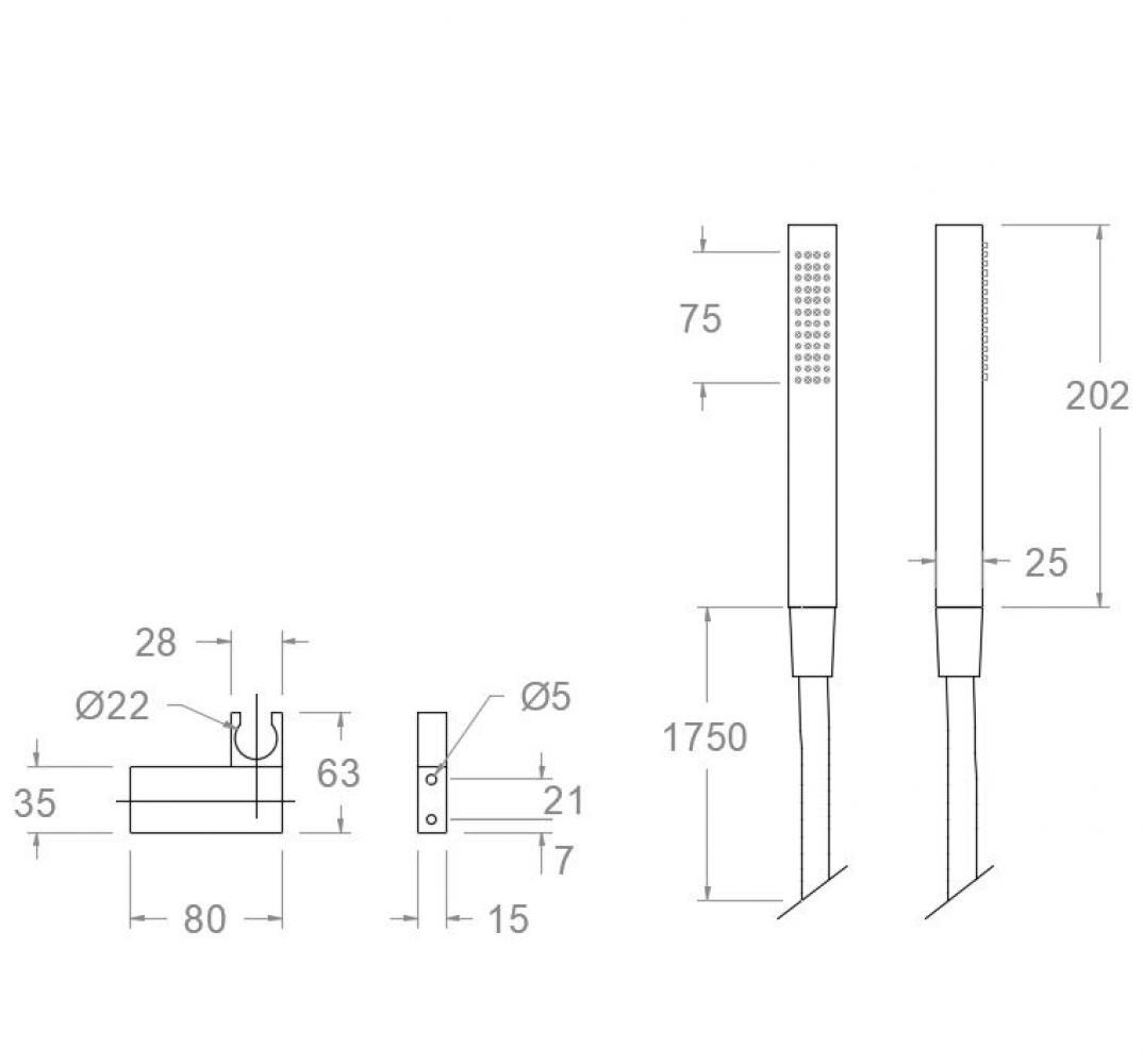 Conjunt rectangular de dutxa de mà, flexo i suport, crom.