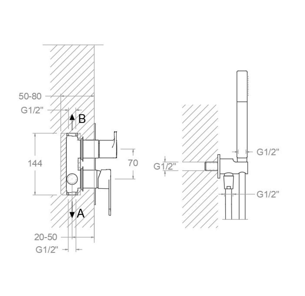 Monomando de ducha empotrado 1 vía con placa metálica