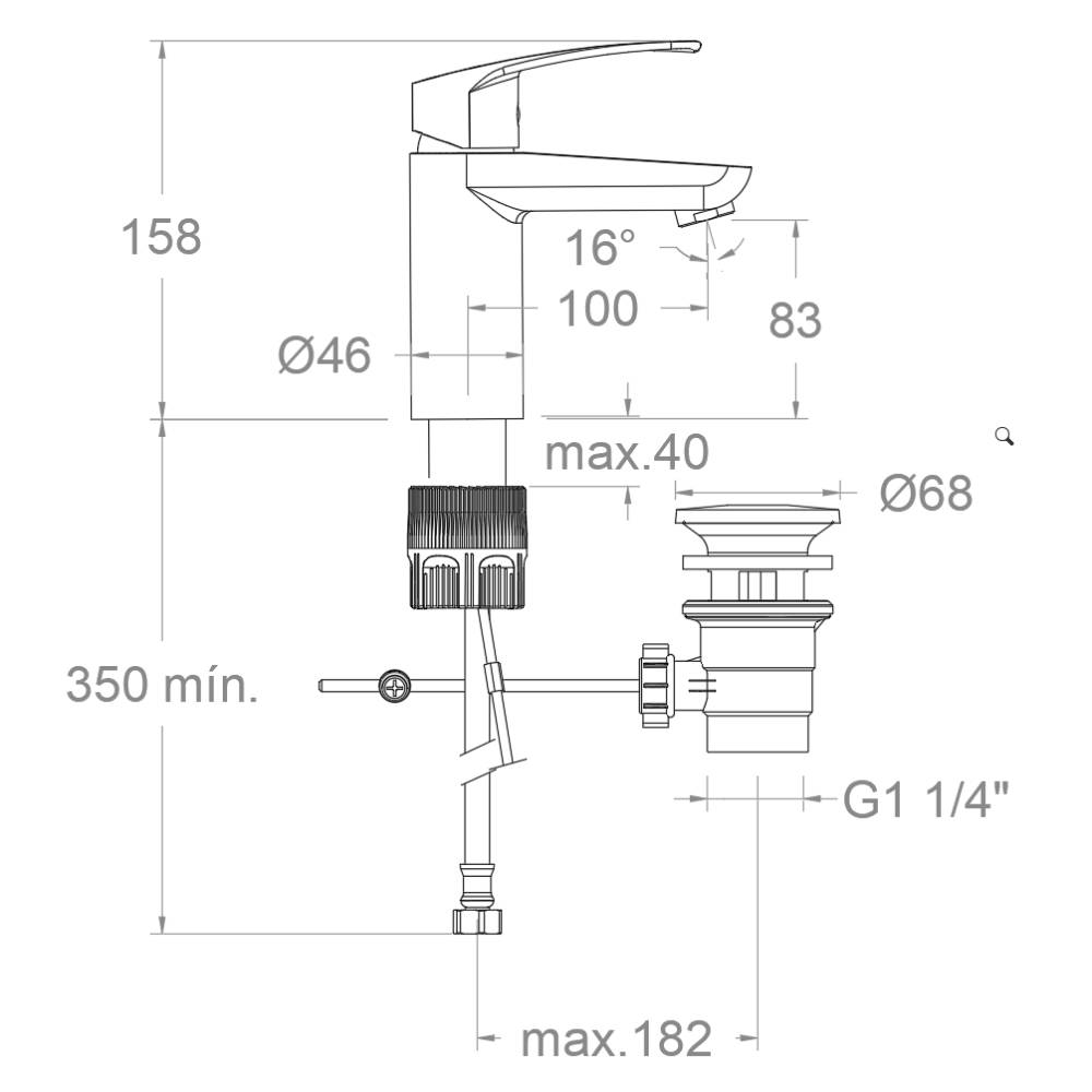 New Fly, eina lliure, aixeta de lavabo, amb vàlvula automàtica d'ABS 1¼ i S3, cromat
