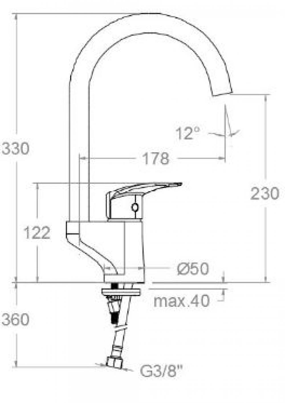 Aixeta d'aigüera amb bec giratori de 360º de Ø28mm, cromat amb acabat Diamond Finish, sistema S2 d'estalvi d'aigua del 50%, limitador de temperatura i sistema anticorrosió patentat.