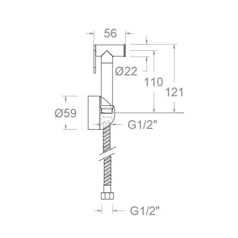 Conjunto para higiene íntima sustituto del bidé con duchita ABS a chorro y flexo de 1,20m, con llave de paso standard y cromado de alta resistencia Diamond Finish