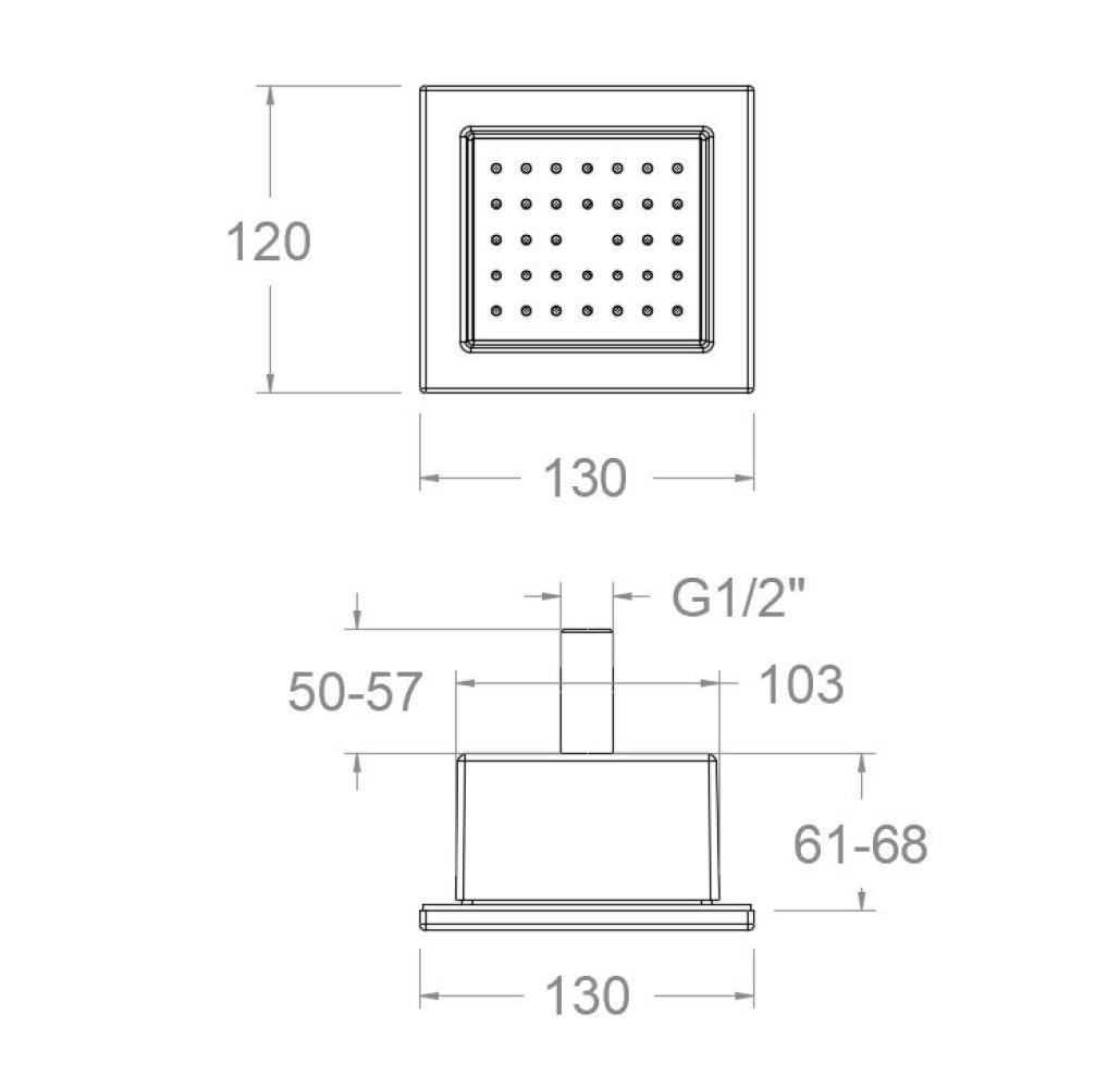 Dutxa lateral de massatge quadrada de 120x130 cm. Inclou boquilles de silicona flexibles. Acabat negre mat d'alta resistència pel seu tractament electrostàtic sobre galvanitzat.