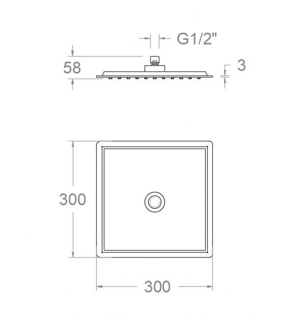 Dutxa de polvoritzador ABS quadrat de 300x300mm. Amb una sortida d'aigua uniforme i sistema anti-cal gràcies a les seves boquilles flexibles de silicona. Acabat grafit d'alta resistència pel seu tractament PVD.