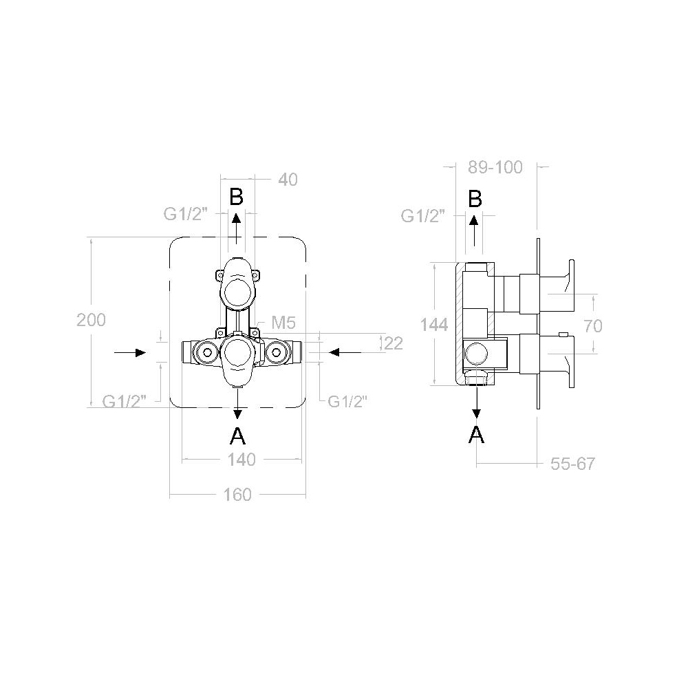 Aixeta de bany encastada de 2 vies amb control de cabal, placa metàl·lica extra-plana, de instal·lació senzilla pel seu cos compacte, or cepillat d'alta resistència pel seu tractament PVD, sistema termostop limitador de temperatura i sistema anticorrosió patentat.