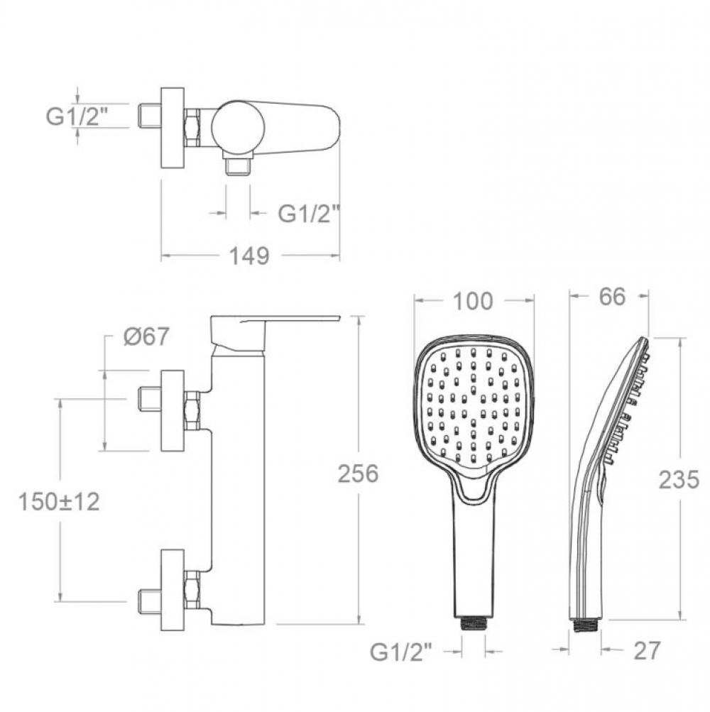 Alexia, conjunt monomando de dutxa amb equip de dutxa, or raspallat
