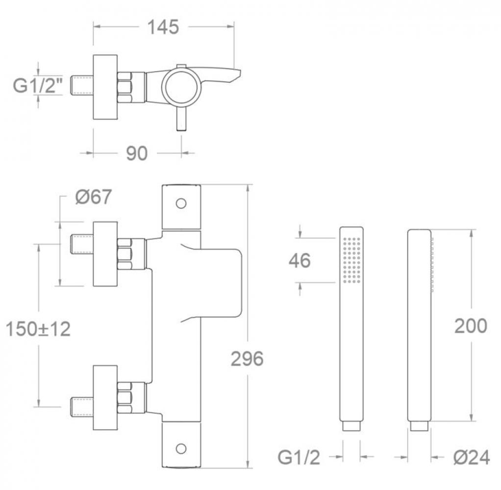 Conjunt termostàtic de bany-dutxa, amb equip de dutxa i sortida en cascada. Acabat crom d'alta resistència, amb sistema anticorrosió Ànode de Sacrifici.