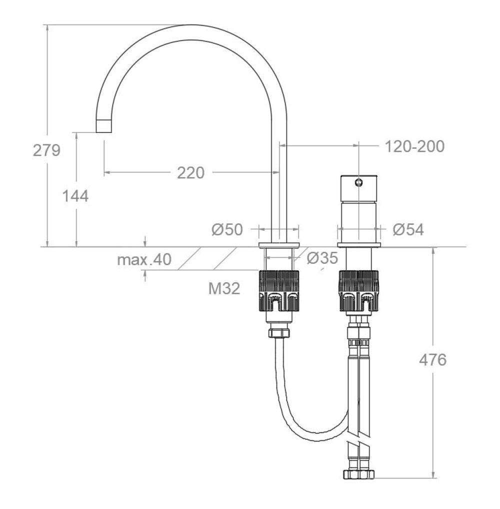 Aigüera de prestatge monocomandament. Canó de 190mm, 8L de cabal. Acabat crom d'alta resistència per al seu tractament electrostàtic sobre galvanitzat.