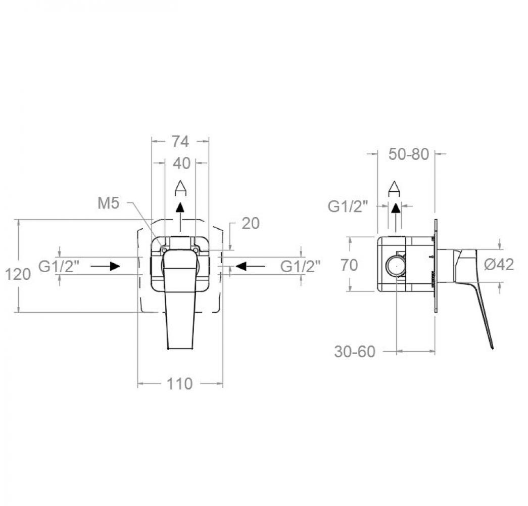 Prisma, monocomandament de dutxa encastat 1 via, crom
