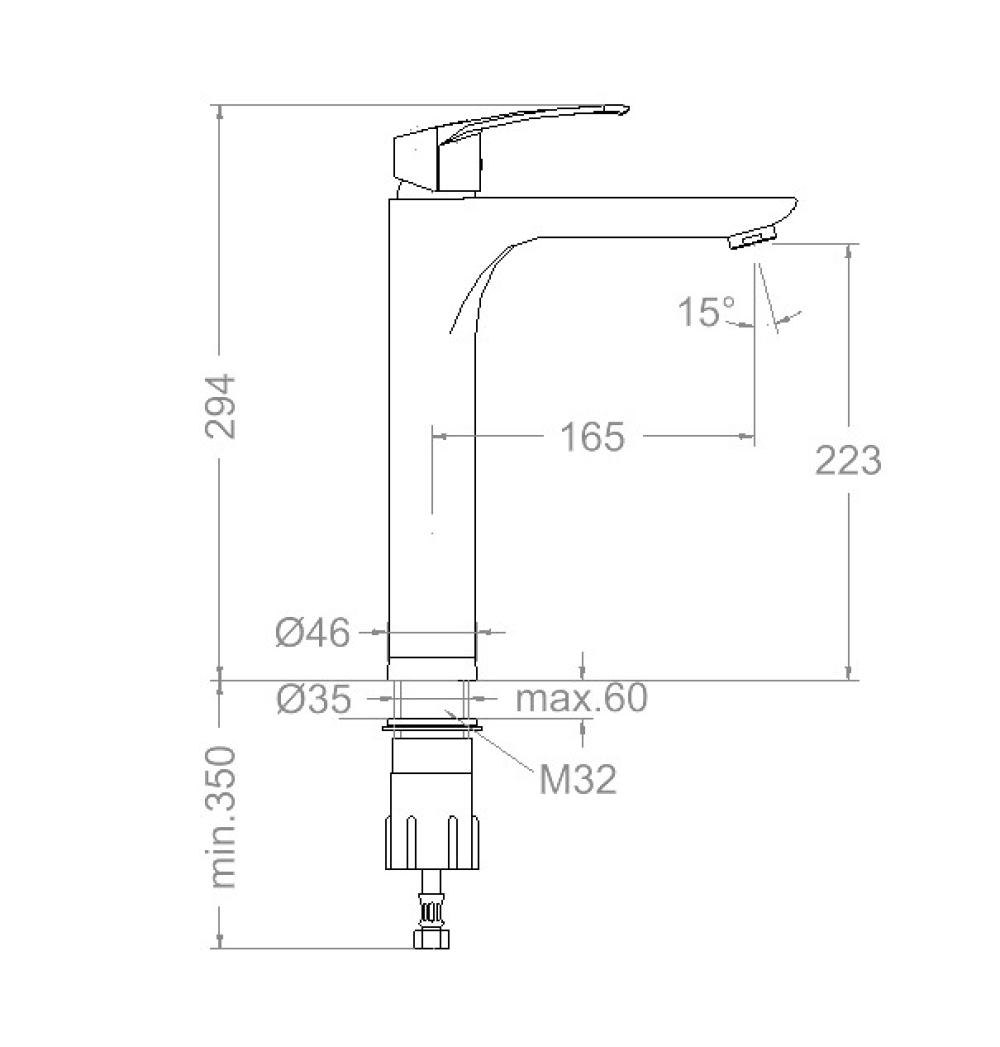 Aixeta de lavabo alçada L, cromat Diamond Finish, sistema S2 d'estalvi d'aigua del 50%, limitador de temperatura i sistema anticorrosió patentat
