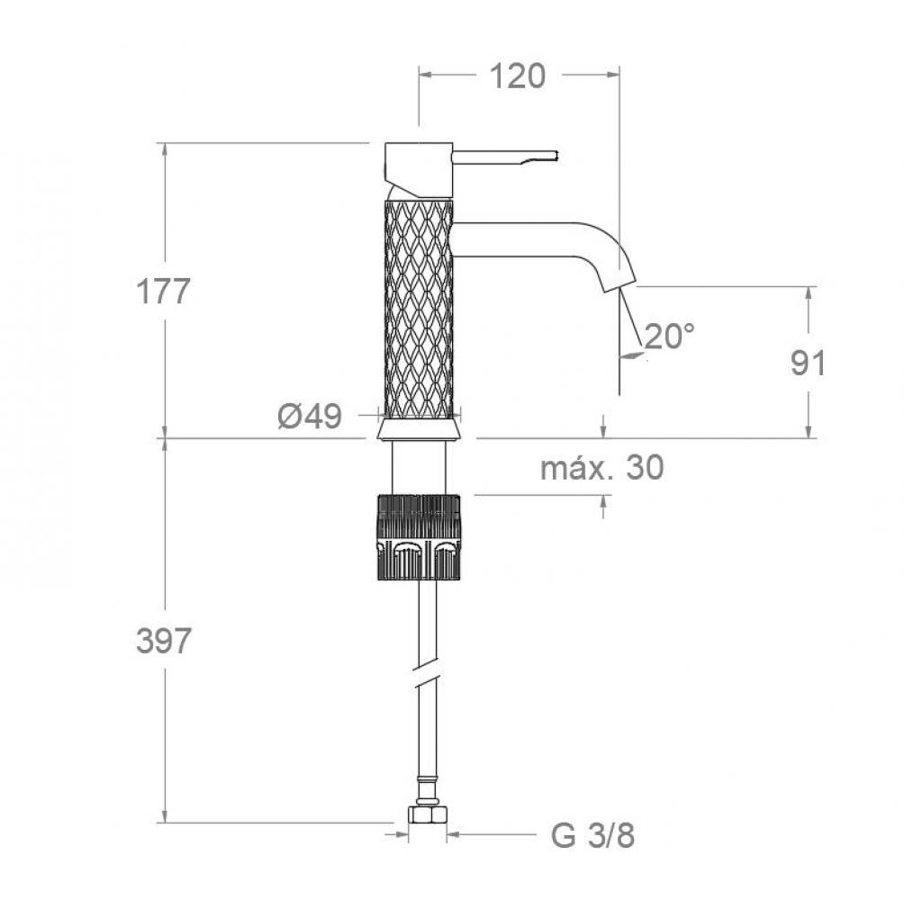 Aixeta de lavabo alçada S, amb cabal limitat 5L i sistema Tool Free patentat per a una fixació ràpida i segura. Acabat or raspallat d'alta resistència per al seu tractament electrostàtic sobre galvanitzat.