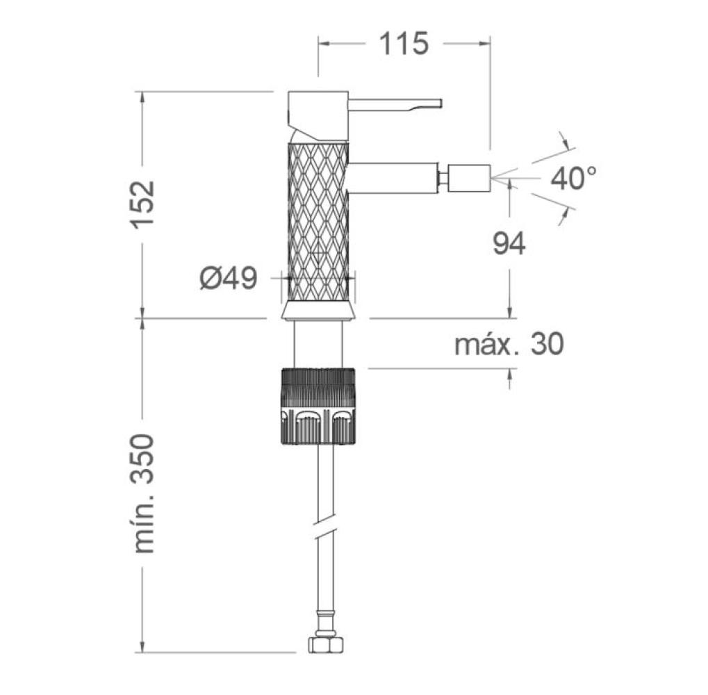 Aixeta de bidet amb ròtula, cabal limitat 5L i sistema Tool Free patentat per a una fixació ràpida i segura. Acabat grafit d'alta resistència per al seu tractament PVD.