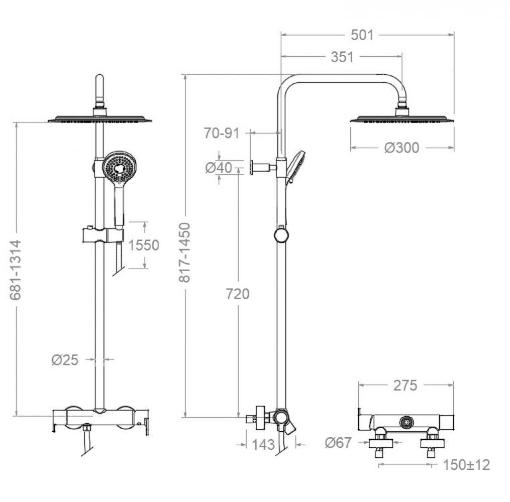 Blautherm, columna de ducha telescópica monomando cromada rociador Ø240mm
