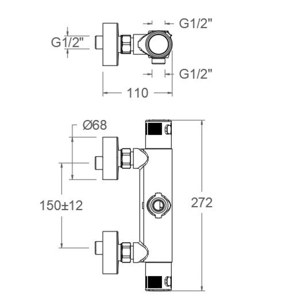 Dutxa termostàtica amb sistema cooltouch anti cremades i de seguretat hotblock. Acabat negre mat d'alta resistència per al seu tractament electrostàtic sobre galvanitzat.