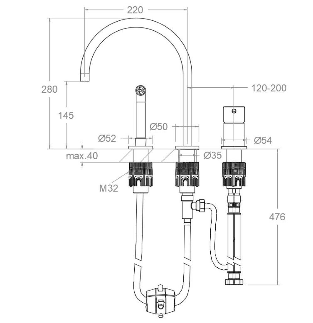 Odisea, Wandspülbecken mit Handbrause und 145mm Auslauf, gebürstetes Gold