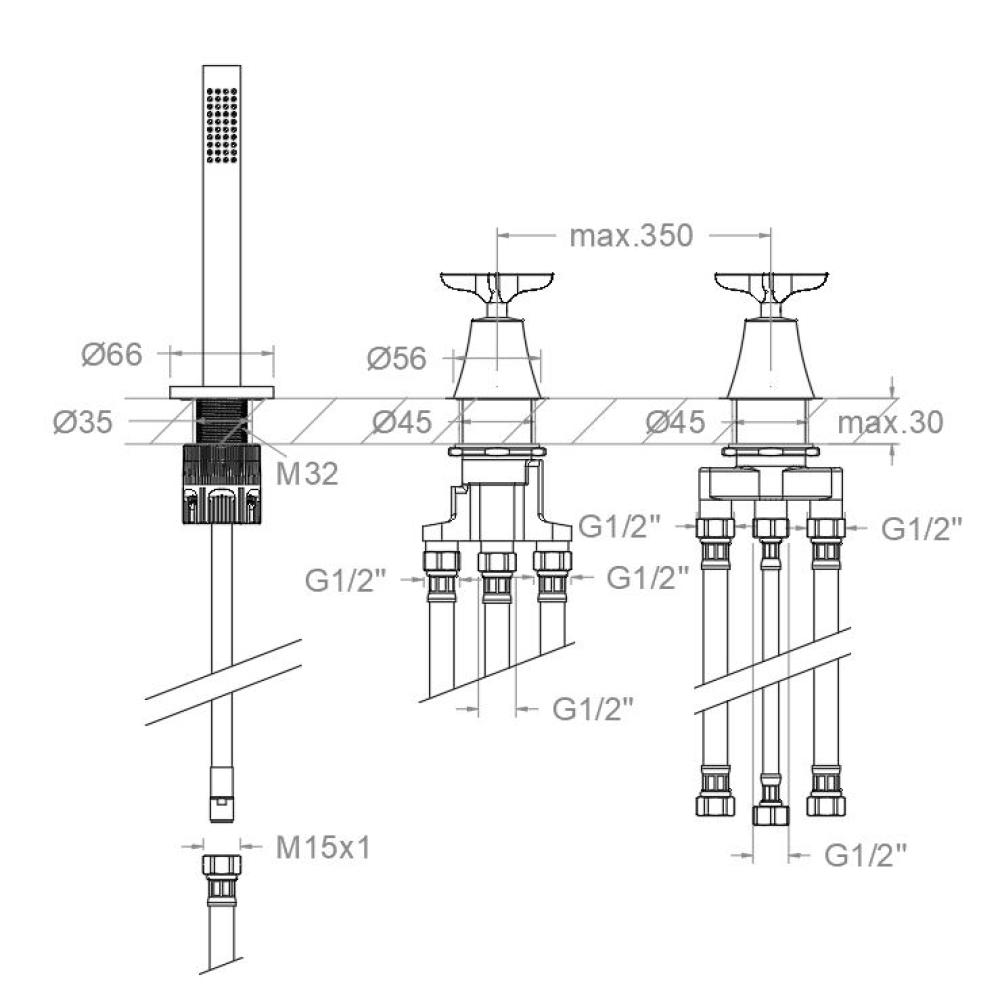 Adagio, termostático de baño-ducha de repisa con equipo de ducha, oro cepillado