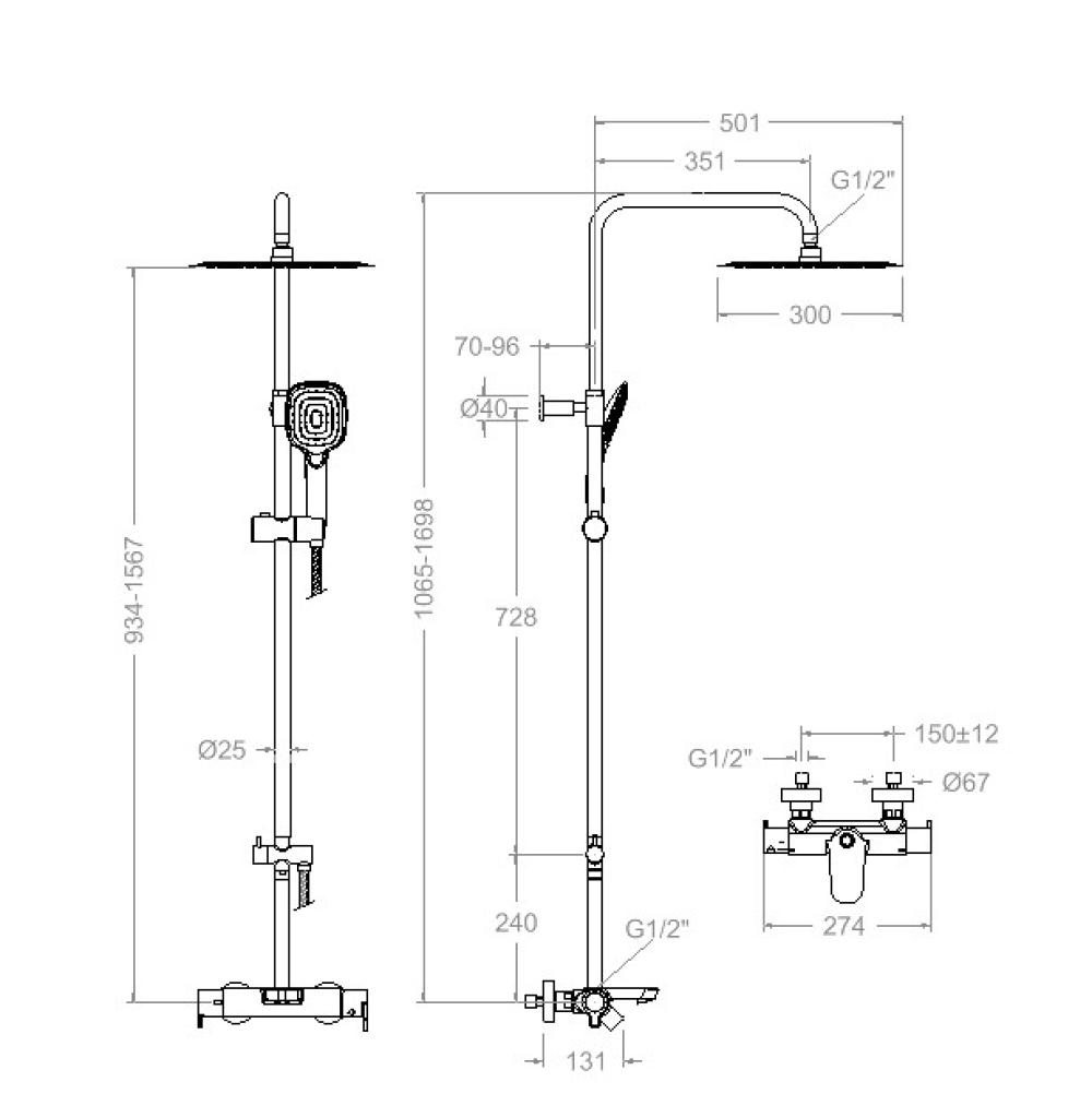 Blautherm, columna de baño-ducha telescópica monomando, teleducha, rociador cuadrado de 300mm.