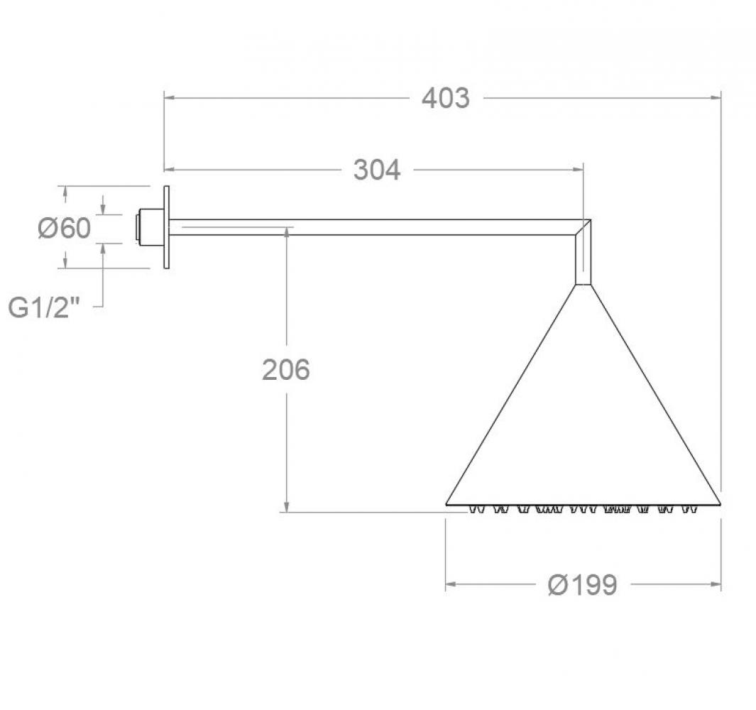 Artemisa, Wandarm mit konischem Duschkopf Ø200mm, Gebürstetes Kupfer