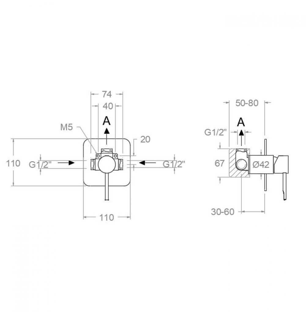 Einhebel-Duscharmatur zum Einbau, 1-Wege, mit flacher Metallplatte, S2-Wassersparsystem mit 50% Einsparung und Temperaturlimiter. Hochwertiger Chrom-Finish.