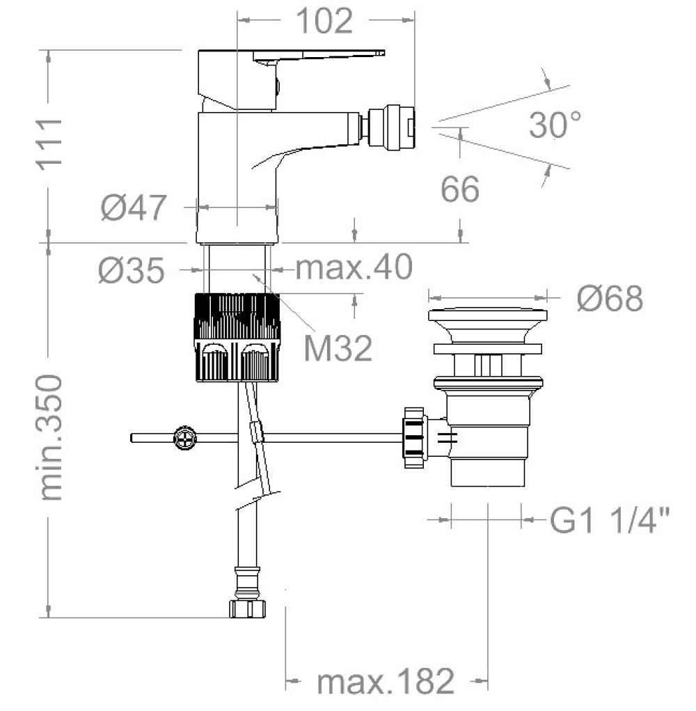 Titanium, Tool Free, single-lever bidet mixer with 1¼ ABS automatic valve, chrome