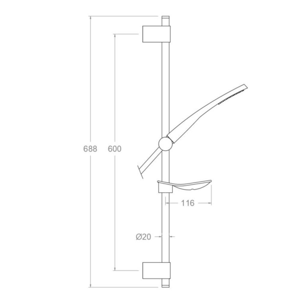 Metallic slide bar with shower set, 1 function ABS handshower, antilime scale system, and flexible hose 1,75m with swivel end,