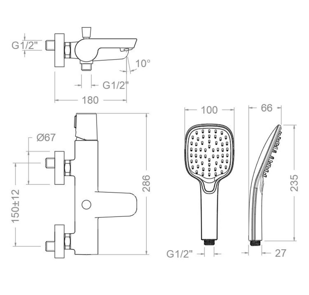 Tzar matt black, bath and shower mixer, S2 system for 50% water saving, temperature limiter, and patented anticorrosion system. High-resistance brushed nickel finish with PVD treatment.