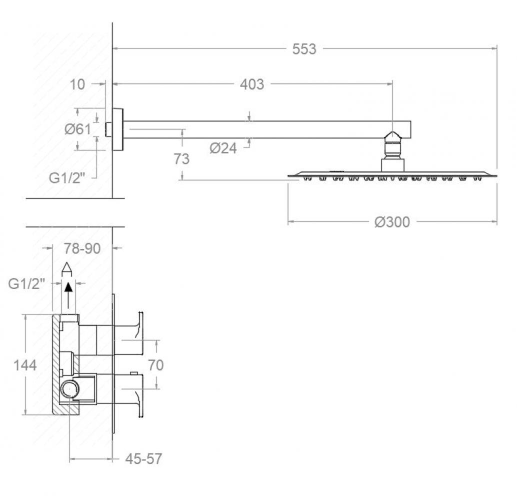 Drako, built-in thermostatic metal set with 1 way and metallic showerhead Ø300 mm, chrome Drako, built-in thermostatic metal set with 1 way and metallic showerhead Ø300 mm, chrome