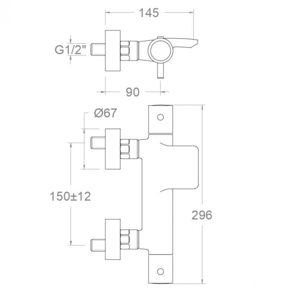 Thermostatic bath-shower mixer, without shower equipment, with waterfall outlet. High-resistance matte black finish with corrosion protection system using sacrificial anode.