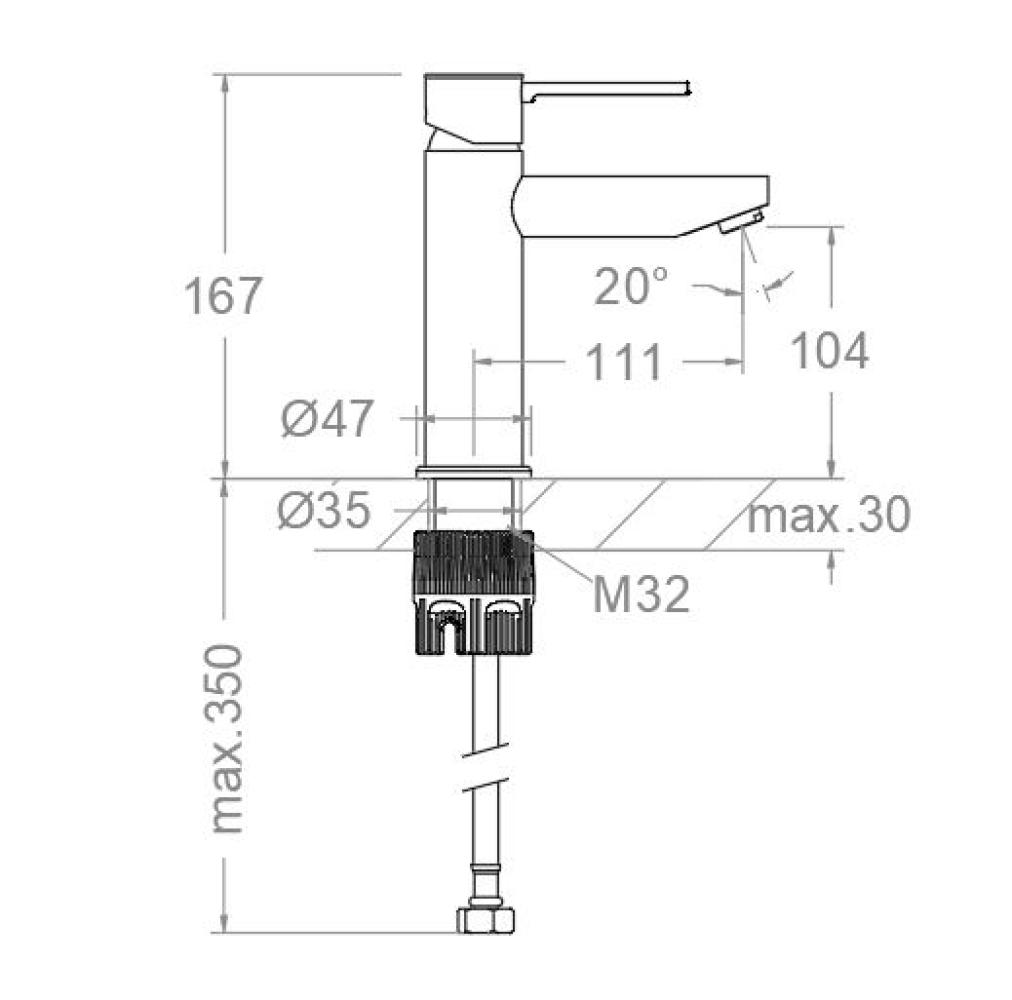 Mamma Mia, washbasin mixer, SH3 5L limitation with cold opening. High-resistance, superior guarantee Quality Finish polished stainless steel finish.
