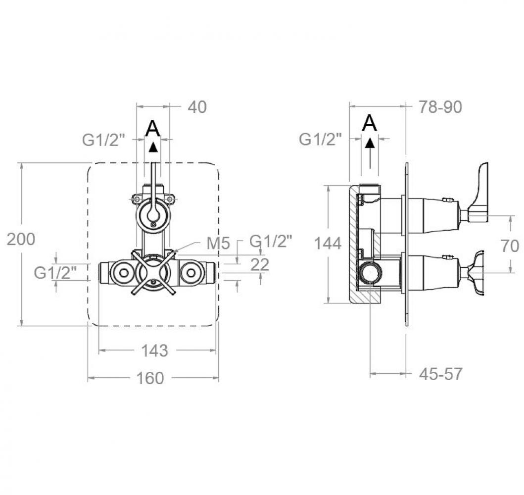 Adagio, concealed thermostatic shower mixer 1 way with metal metal ultraslim cover plate, easy installation and matt black finishing with high resitance due electrostatic system over galvanized
