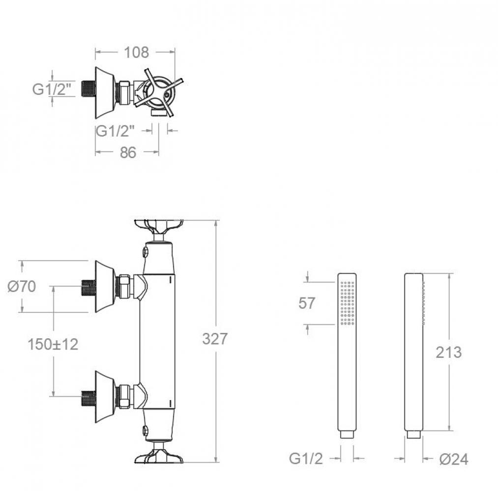Adagio, exposed thermostatic shower mixer with integrated diverter, minimalist handshower with ani-milescale system, 1,75m flexible hose and metal wall suport and matt black finishing with high resitance due electrostatic system over galvanized