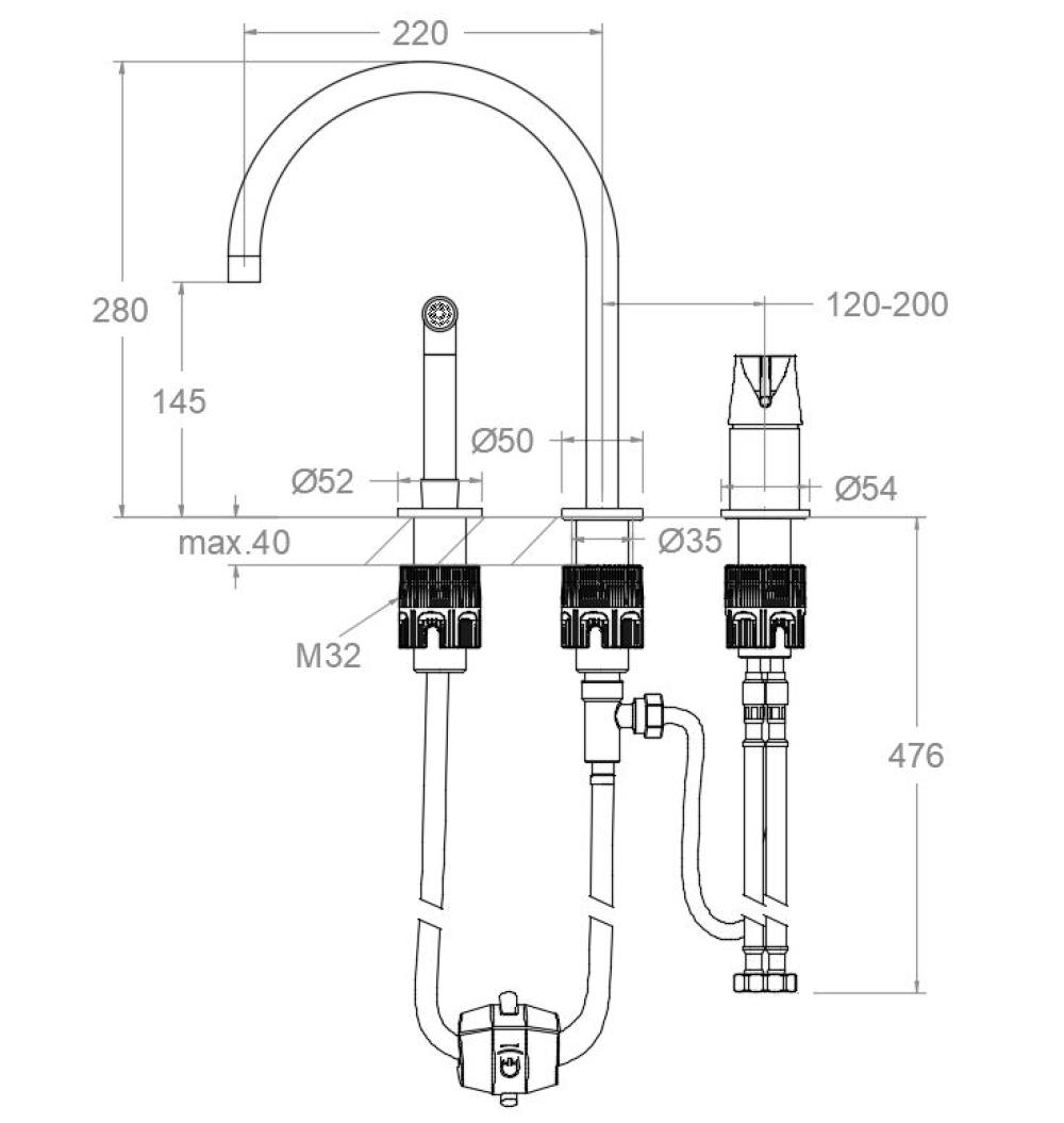 Single-handle countertop kitchen faucet. Spout length: 190mm, flow rate: 8L. High-resistance brushed gold finish due to PVD treatment.