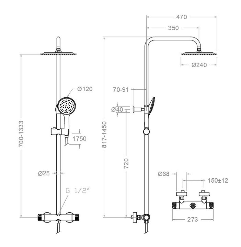 RS Smart, built-in thermostatic 3-way faucet set, matte black. RS Smart, built-in thermostatic 3-way faucet set, matte black.