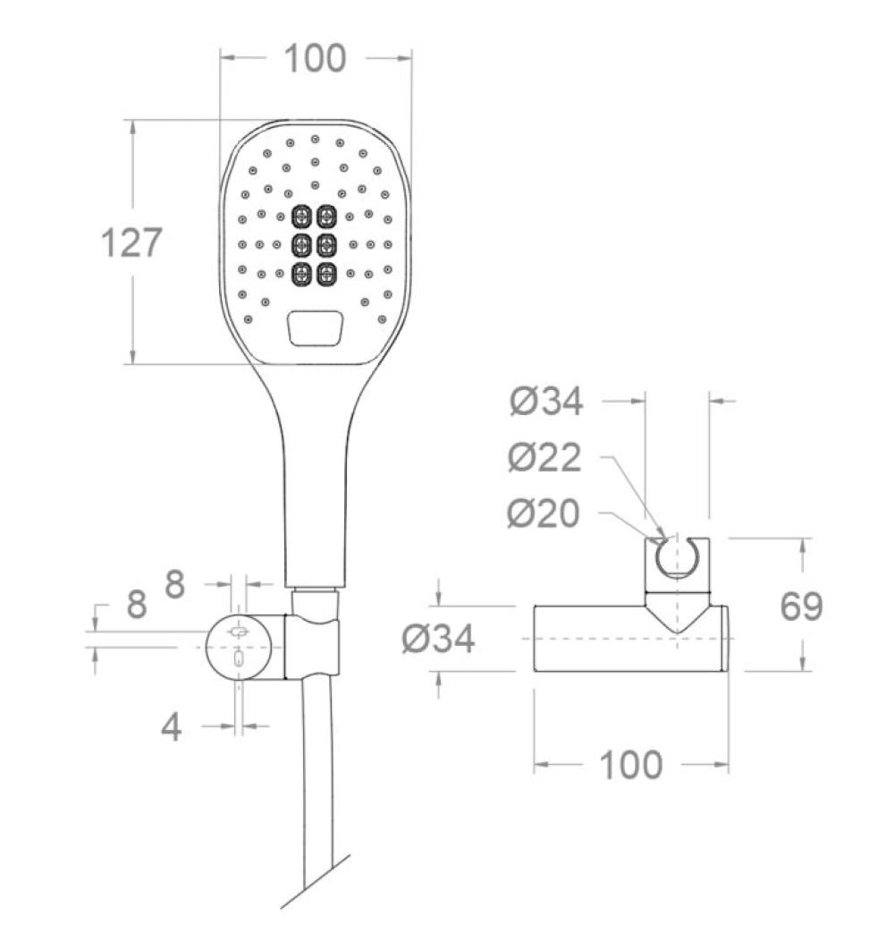 Handshower 3 jets ABS, with flexible connection and wall bracket