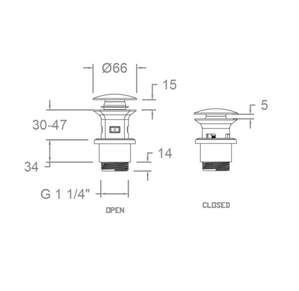 Drain valve with Click Clack system for wasbasin with/without overflow.