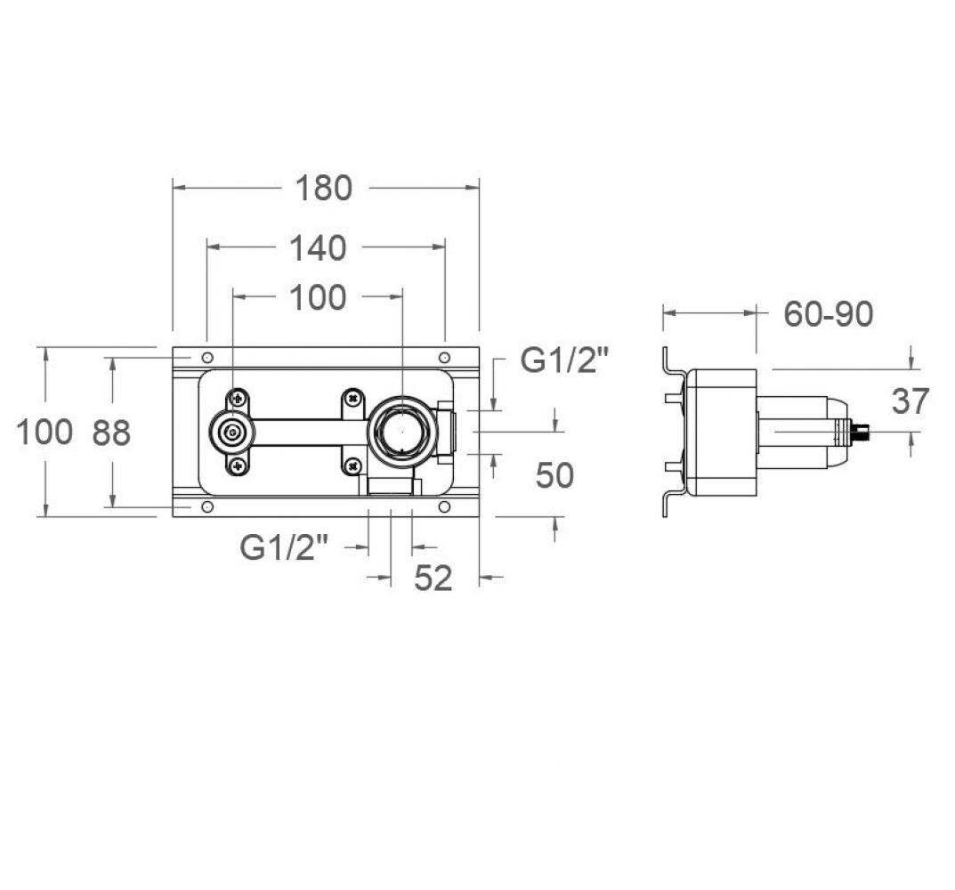 Lavabo empotrado para caño con tubo S2 con caja.