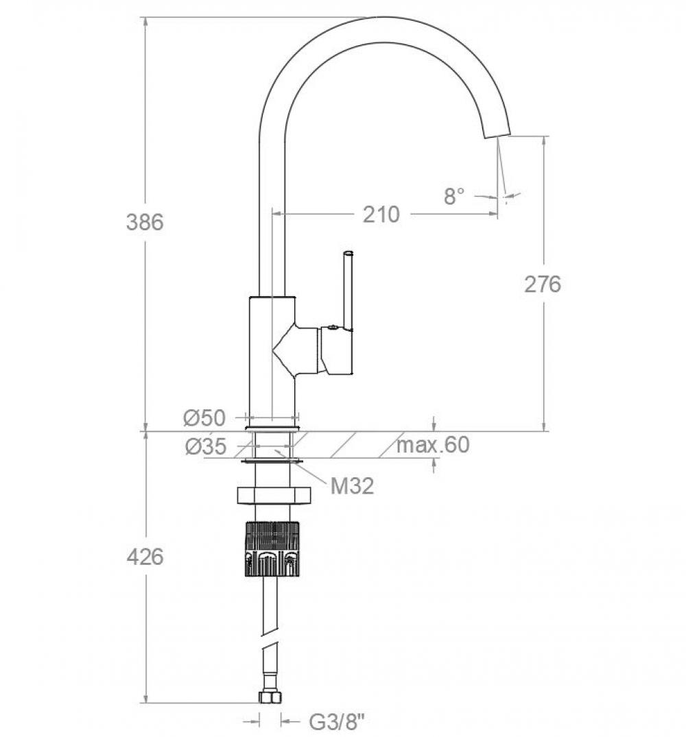 Drako. Monomando de fregadero con caño giratorio.