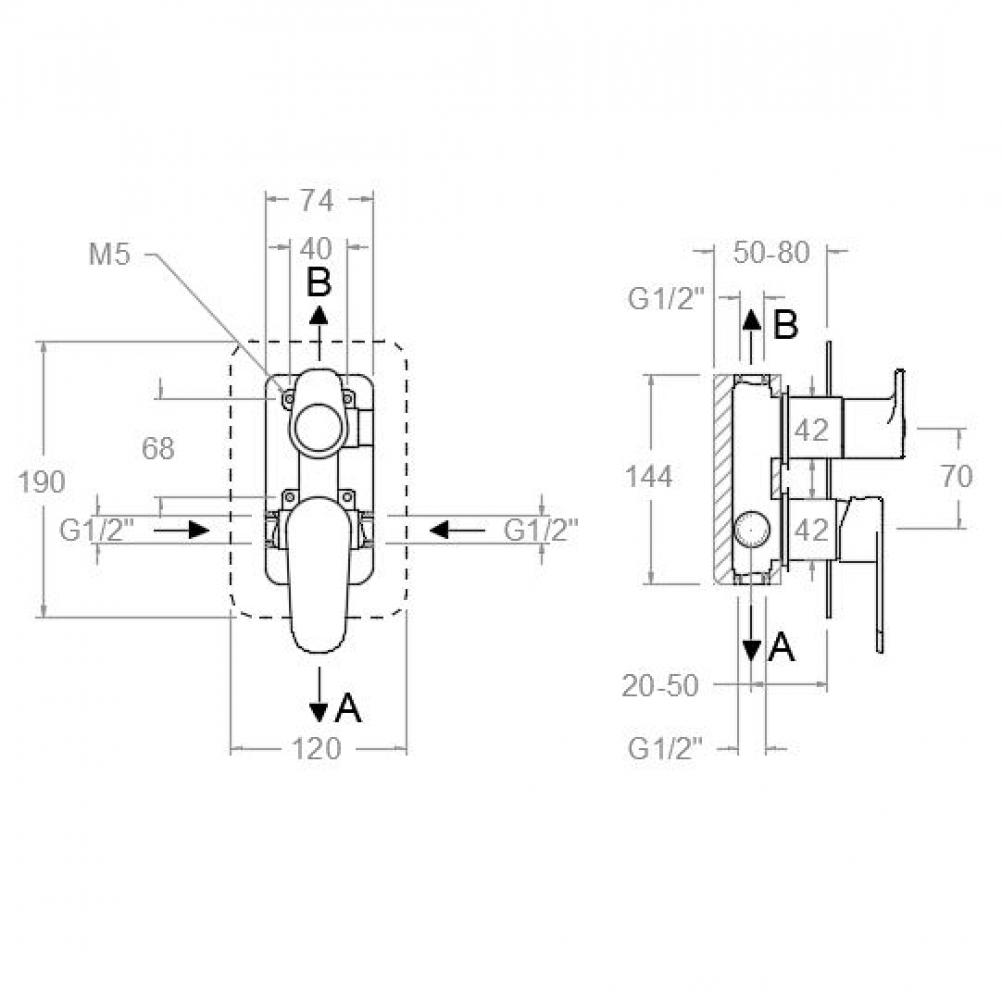 Alexia,monomando de baño-ducha empotrado 2 vías con placa metálica,cromo