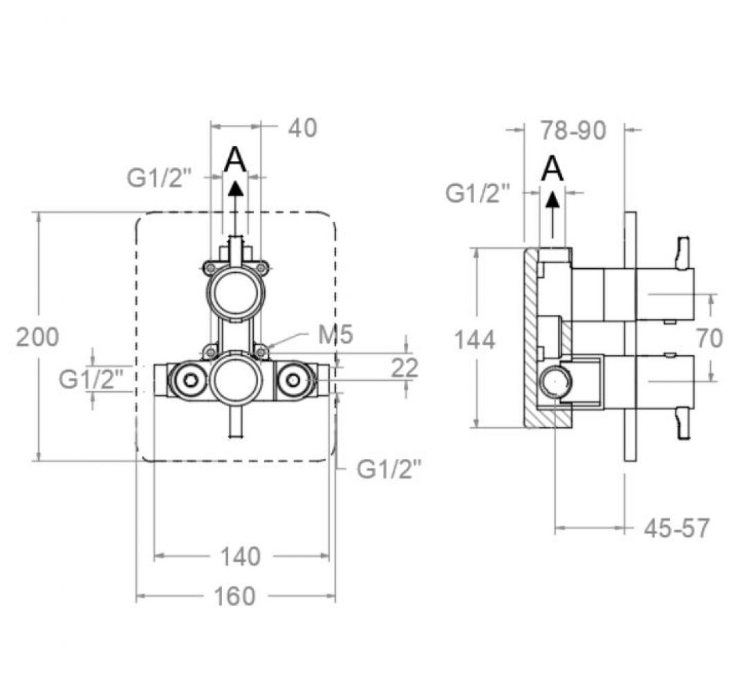 Grifo termostático de ducha empotrado de 1 vía con placa metálica extraplana. Acabado oro cepillado de alta resistencia por su tratamiento electrostático sobre galvanizado.