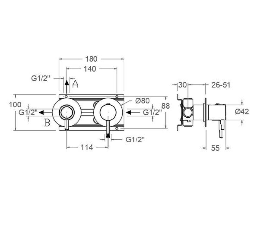 Odisea. Monomando de ducha empotrado metálico de 2 vías.