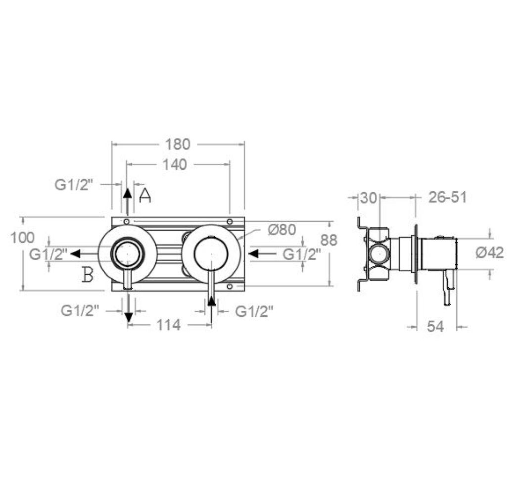 Odisea. Monomando de ducha empotrado metálico de 3 vías.