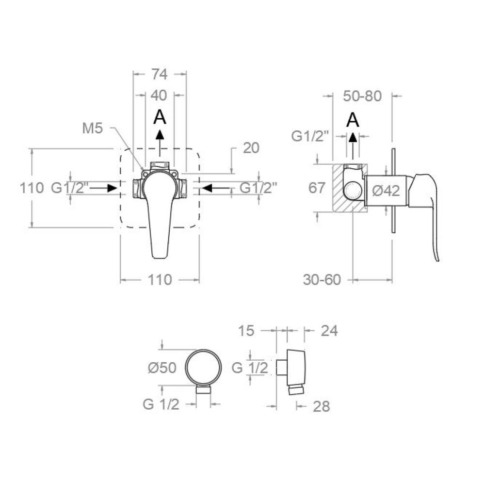 Ypsilon Plus, conjunto monomando empotrado teleducha 1 vía, cromo