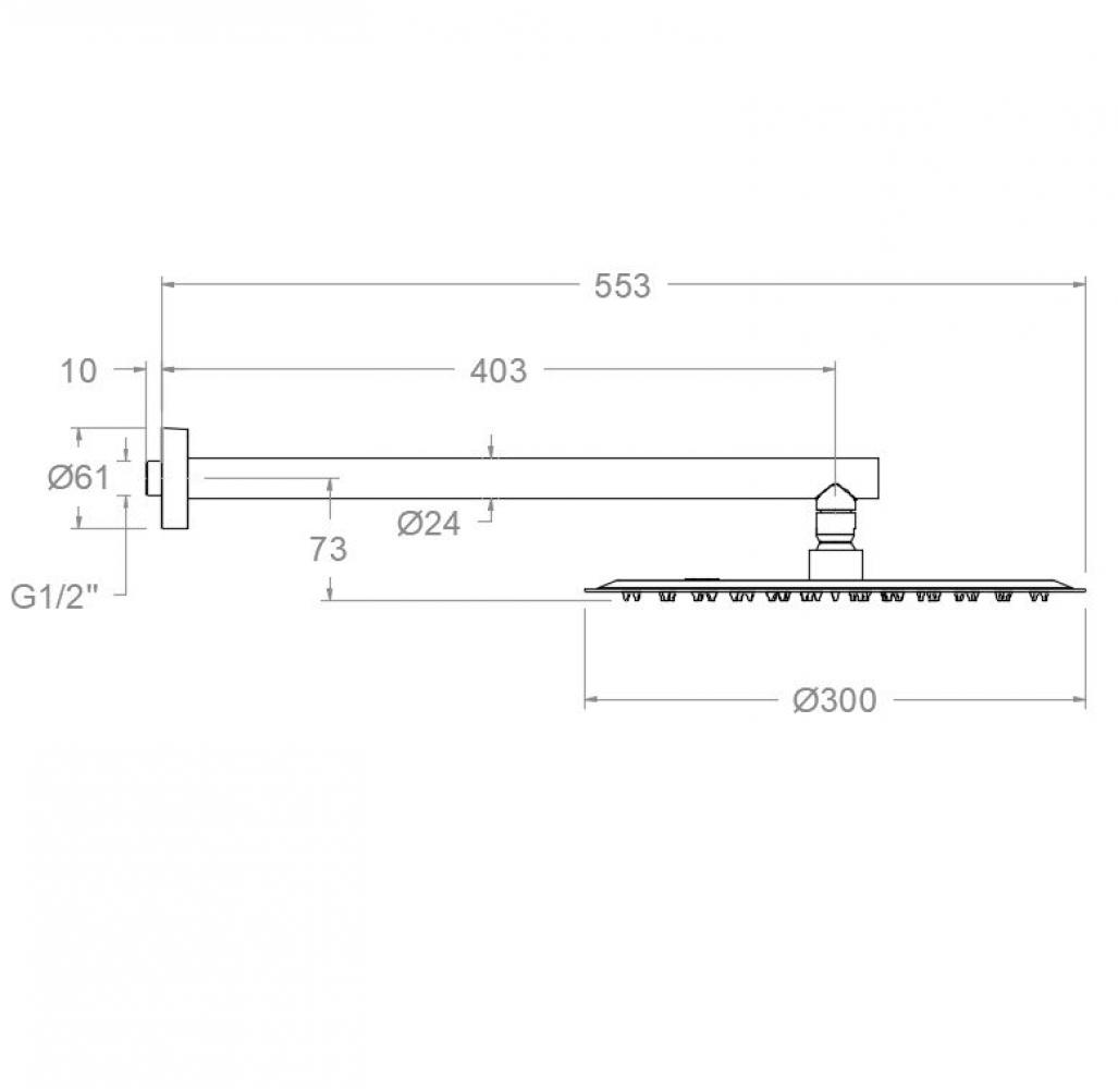 Conjunto de brazo de pared con rociador redondo de Ø300mm. Acabado grafito de alta resistencia por su tratamiento PVD.