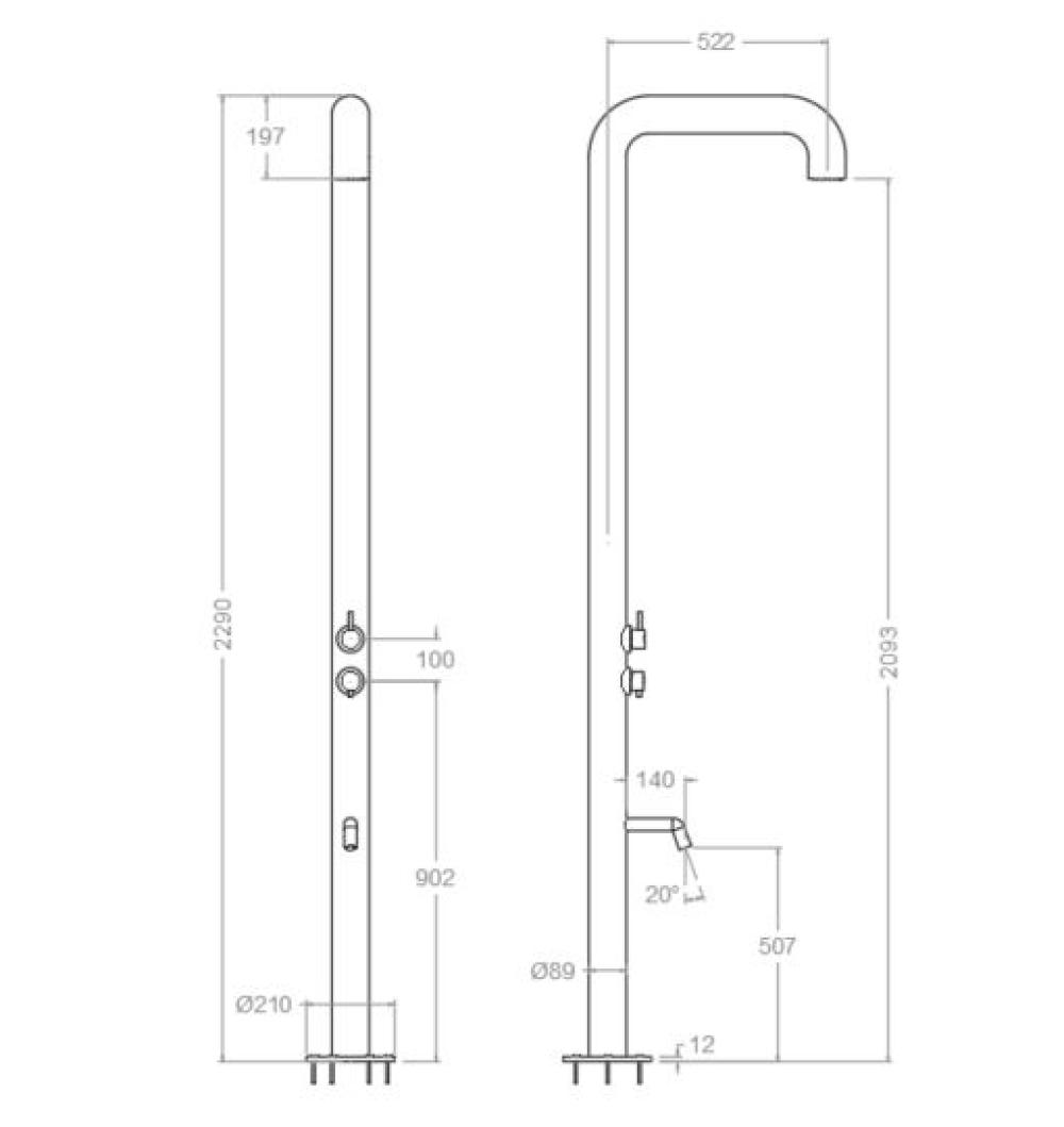 Columna de ducha, cobre cepillado