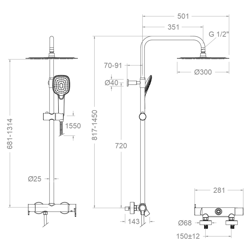 Columna de ducha telescópica monomando, rociador redondo Ø300 mm. Incluye, sistema Hot Block de seguridad antiquemaduras y el sistema de ahorro de agua S2 mediante la apertura de la manecilla en dos fases. Acabado cromado Diamond Finish de alta resistencia.
