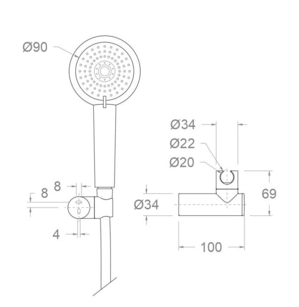 Ensemble Douchette massage de 3 positions de Ø90mm avec système anti-calcaire, support mural pour Douchette et finition métallique flexible haute brillance, antitorsion lisse 1,75m Soleflex, chrome haute résistance Diamond Finish