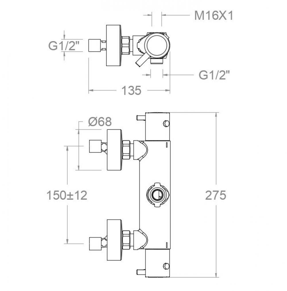 Mitigeur de douche thermostatique à deux voies, sans équipement. Finition or brossé de haute résistance.