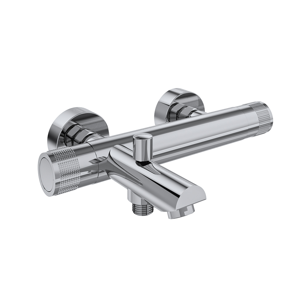 Mitigeur thermostatique de douche, avec cartouche thermostatique équipée du système de sécurité anti-brûlure Hot Block et du système Termostop limitant la température à 38°. Système Cooltouch qui permet de maintenir le robinet à une température tiède au toucher pour éviter les brûlures. Finition noir mat haute résistance grâce au traitement électrostatique sur galvanisation.