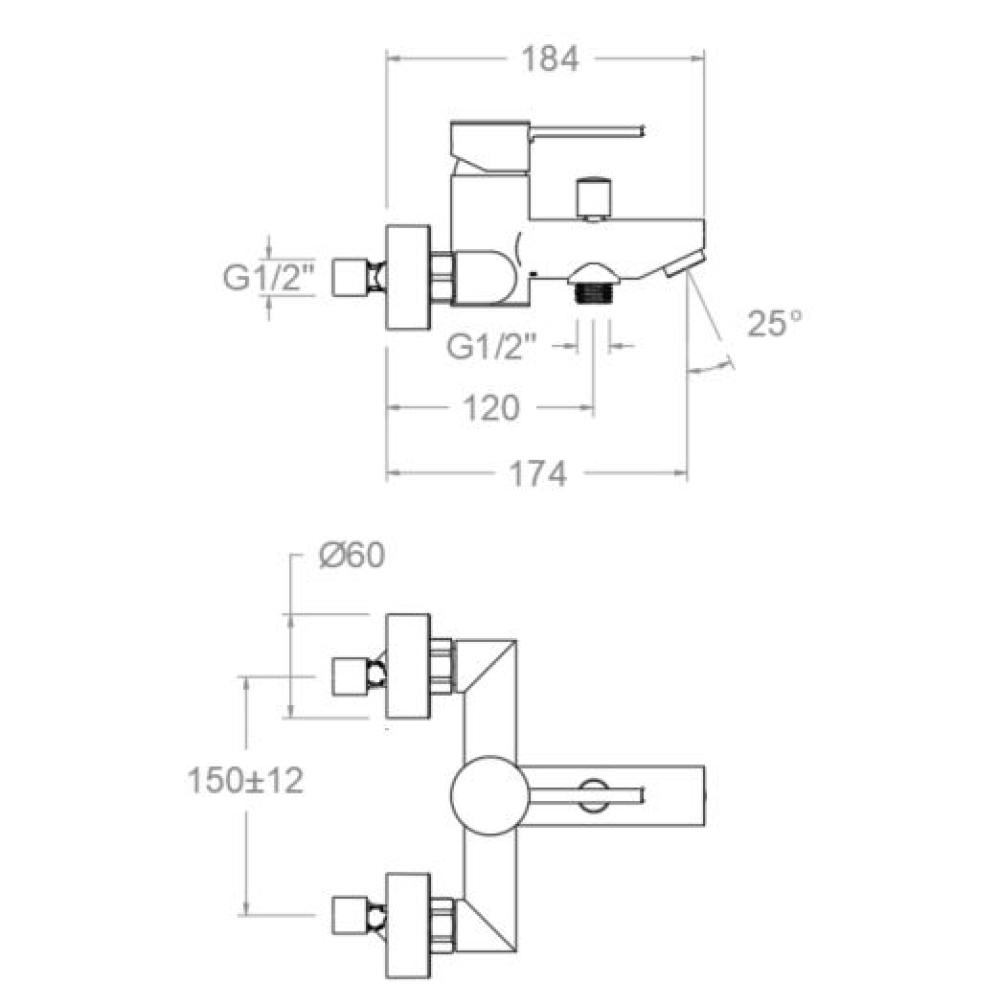 Titanium, robinet mural pour WC, 110 mm, finition chromée.