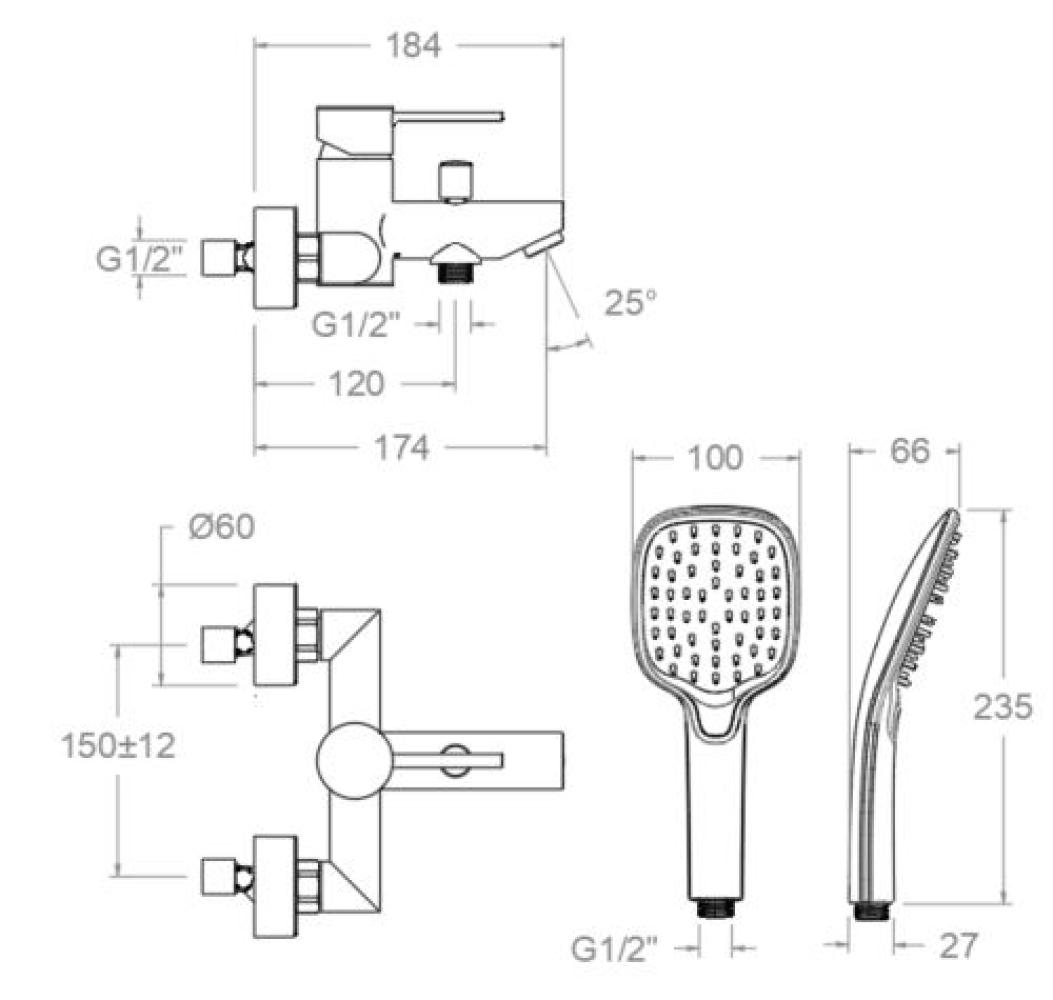 Mamma Mia, ensemble mitigeur baignoire-douche avec équipement de douche, avec système d'économie d'eau S2 grâce à l'ouverture du levier en deux phases. Finition inox brillant Quality Finish haute résistance et garantie supérieure.