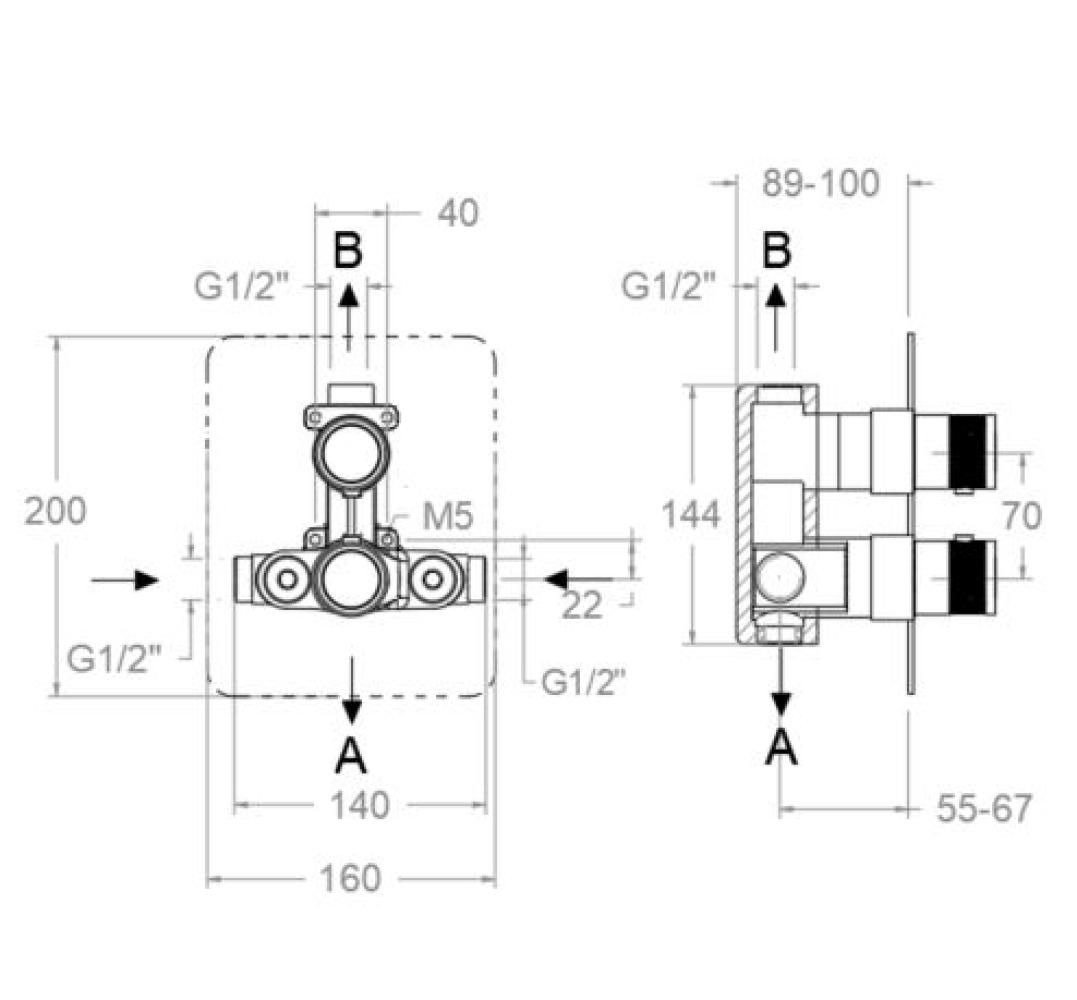 Mamma Mia, thermostatique de douche encastré 2 voies. Finition inox brillant Quality Finish haute résistance et garantie supérieure.
